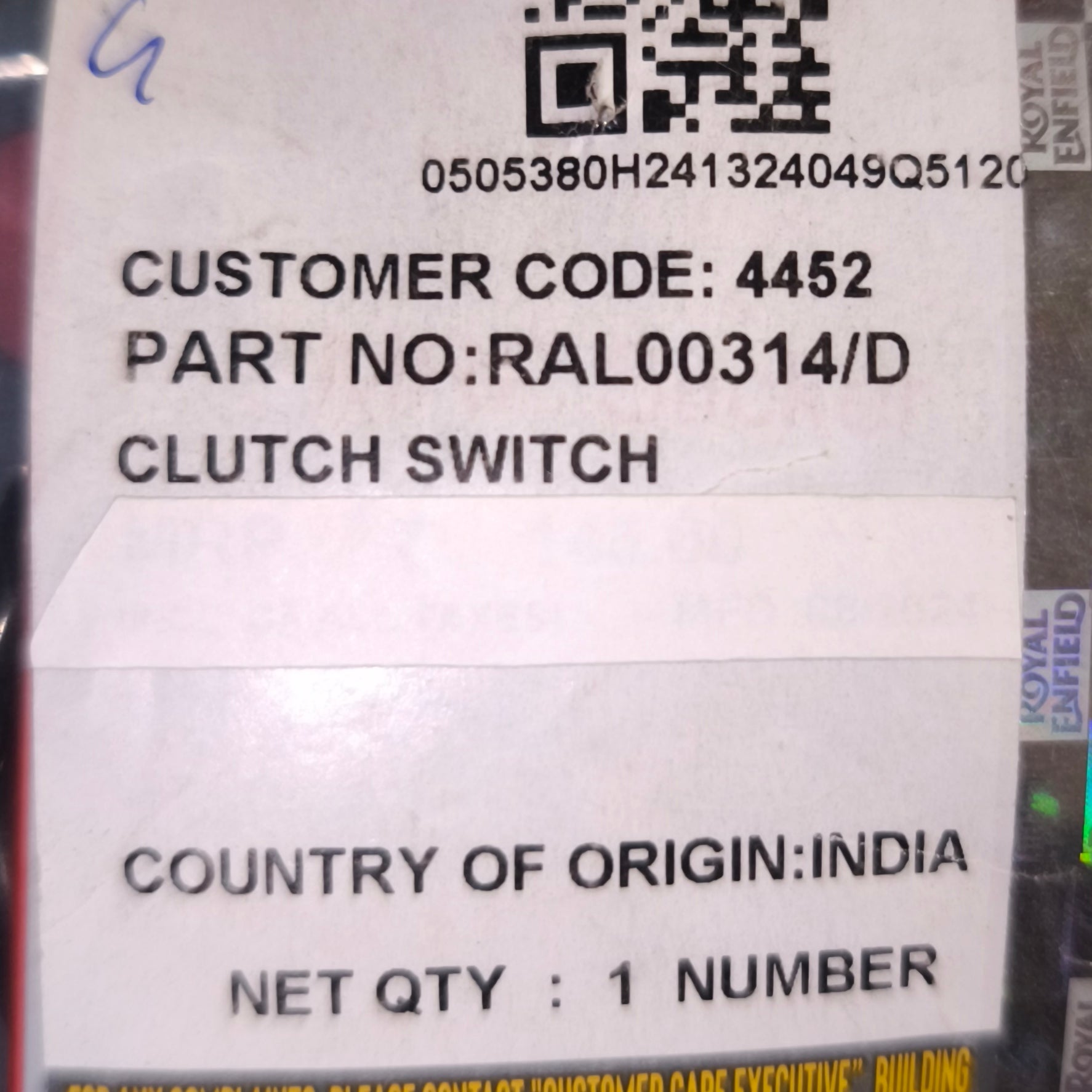 Interuttore Leva frizione Originale Himalayan Guerrilla 450- RAL00314/D
