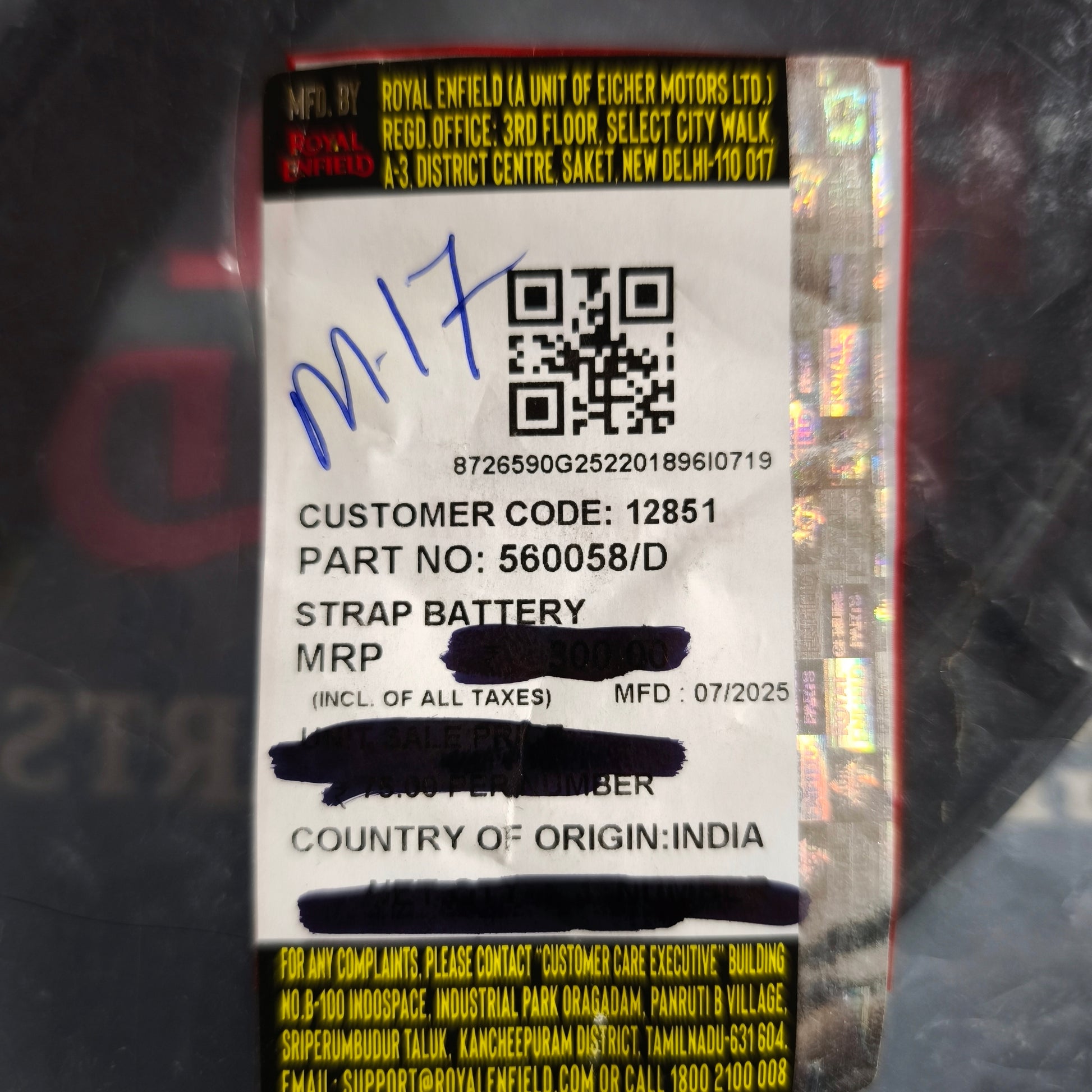 Cinghie batteria originale Royal Enfield Classic Bullet 500 -560058/B